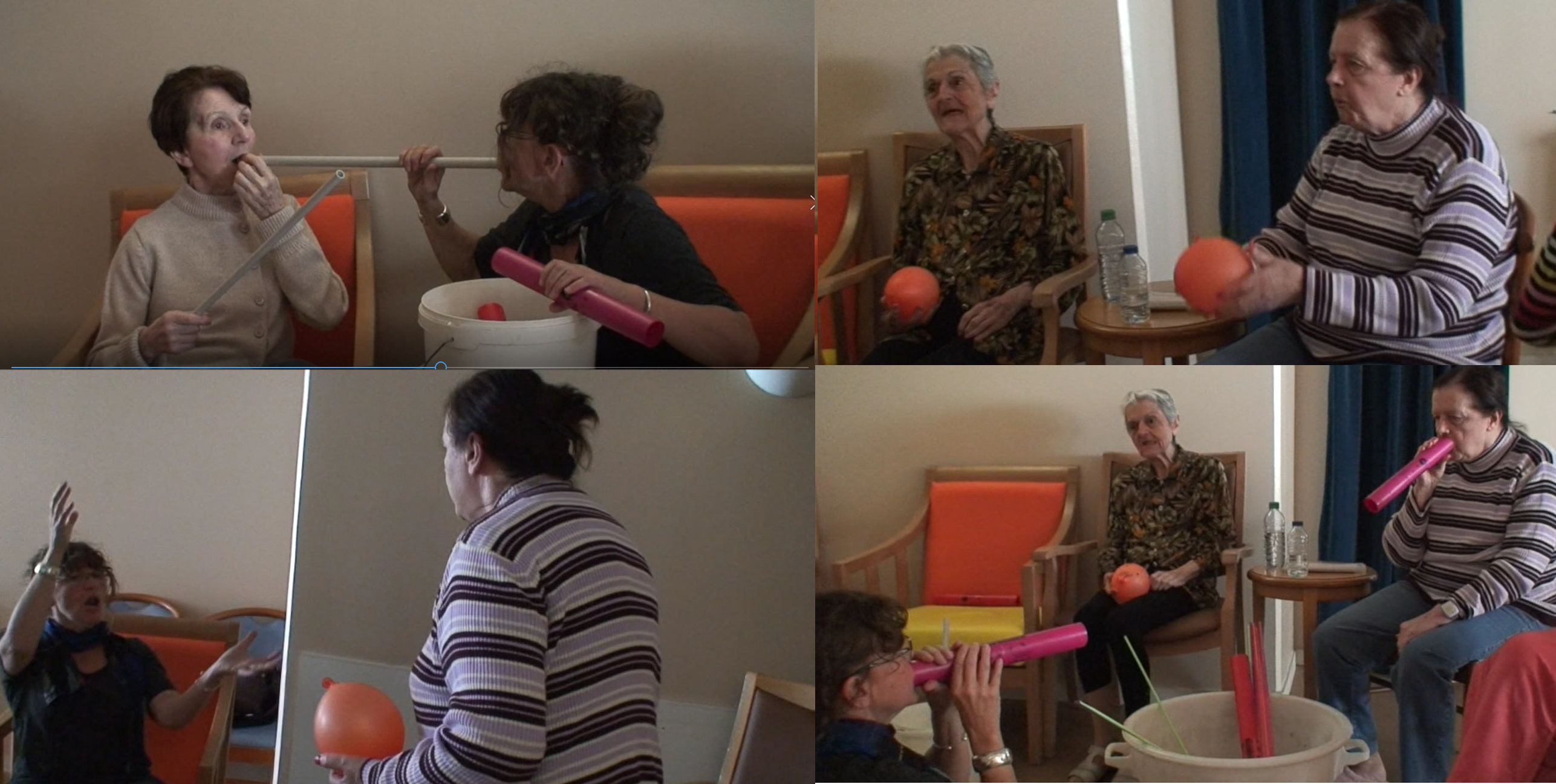 - Montage de plusieurs séances en EHPAD auprès des personnes atteintes de la maladie d’Alzheimer, réalisé par Alice Saulnier, pour son mémoire de musicothérapie (2014).