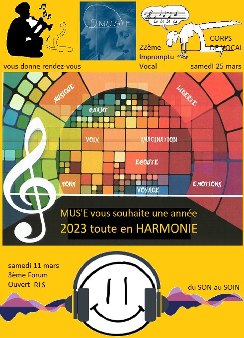 - comme musicothérapeute et directrice de formation de l’association MUS’E, que j’ai créée en1991, « à l’écoute des besoins de chacun et désireuse d’offrir des espaces de communication et de rencontres, ouverts à tous, mettant l’Art, la Musique et la Voix au service de la relation humaine. » En 2020, les contraintes sanitaires ont invité à de nouvelles formes de collaboration notamment dans le cadre d’un projet national interdisciplinaire d’éducation thérapeutique à distance auprès des personnes obèses.