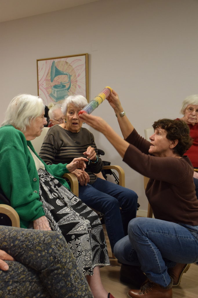Séance de musicothérapie après de personnes âgées, en unité Alzheimer