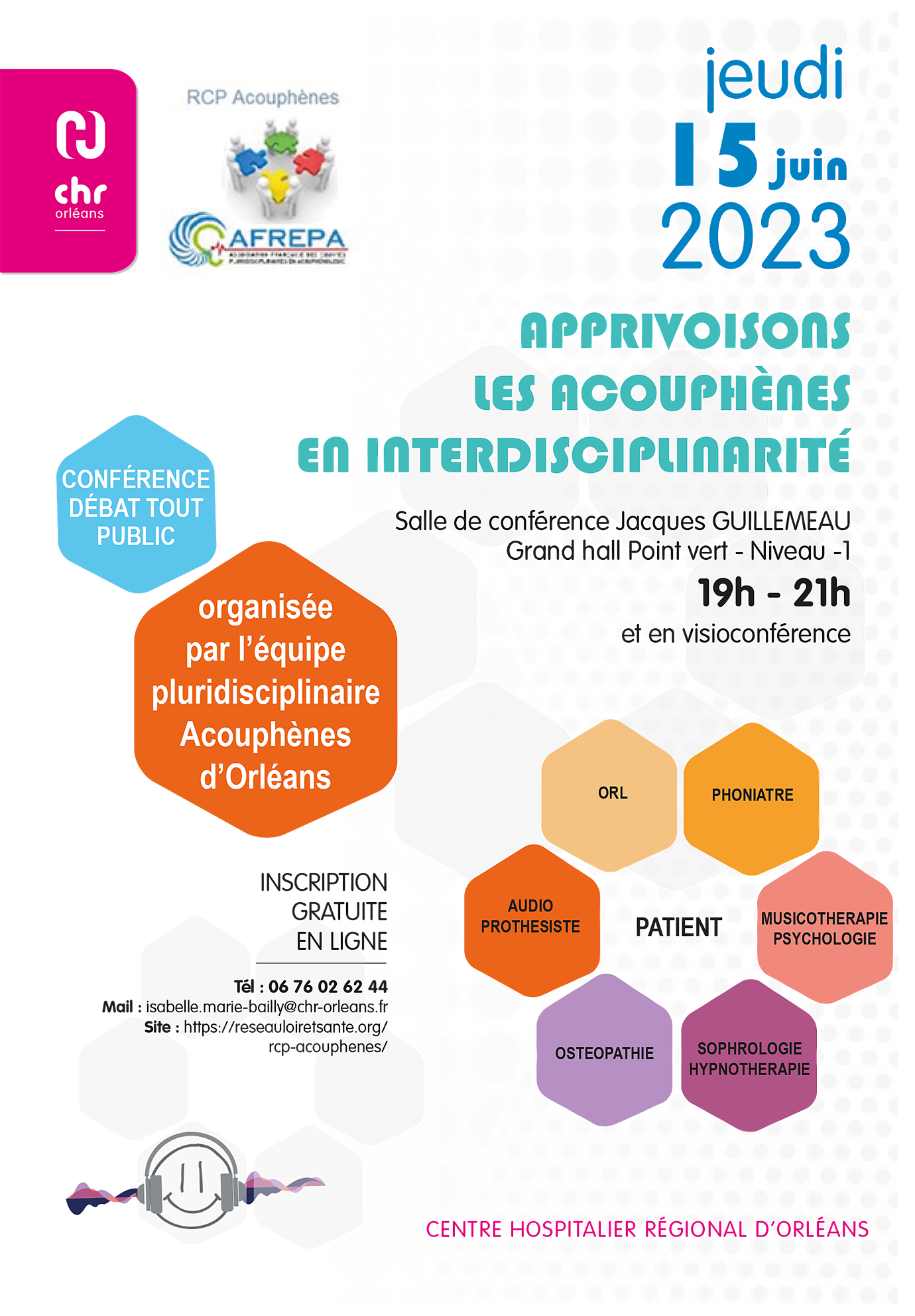 Vidéo de la conférence-débat « apprivoisons les acouphènes en interdisciplinarité » jeudi 15 juin 2023, en partenariat avec le CHRO