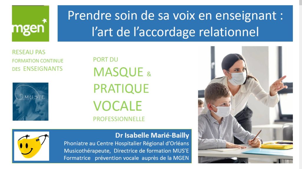 - Prévention des troubles de la voix chez les professionnels de la voix (enseignants, formateurs, acteurs, chanteurs..)