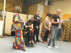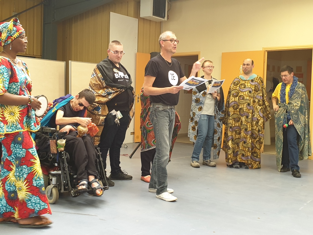 Jeudi 12 septembre, les participants au Chantier MUS’E ont donné la restitution de leur Conte musical « le gorille, le serpent et la banane » lors des portes ouvertes de l’ESAT Paul Lebreton site Rodin.
